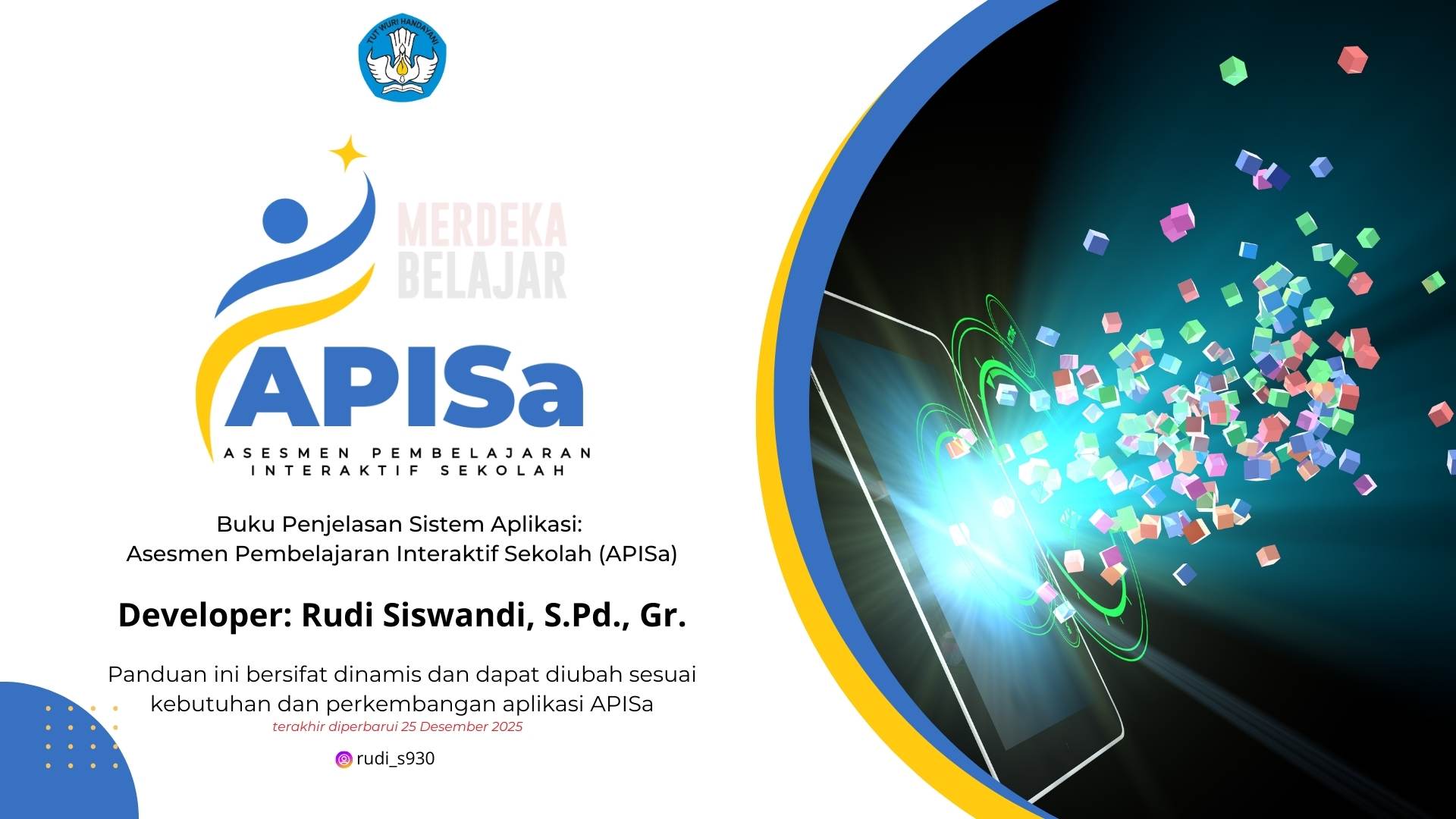 APISa (Aplikasi Pembelajaran Interaktif Sekolah) sudah memiliki Hak Cipta https://pdki-indonesia.dgip.go.id dengan No: EC00202493422, aplikasi ini dirancang oleh Rudi Siswandi pada saat melaksanakan Pendidikan Profesi Guru Prajabatan tahun 2024, pada saat itu masih berbentuk sistem Aplikasi sederhana yang memerlukan instalasi ke perangkat, kemudian dikembangkan/diprogram ulang menjadi sistem web App yang lebih profesional sehingga dapat diakses kapan saja dan dimana saja secara online oleh Guru dan Murid melalui tautan berikut: https://jadiguruku.my.id/apisa, APISa merupakan sebuah inovasi sekaligus solusi atas berbagai persoalan administrasi guru dalam manajemen dan mengelola kelas. melalui aplikasi ini Guru dapat melakukan pencatatan Presensi Murid, Nilai Asesmen, Tes Gaya Belajar, dan mengelola Data Murid. Dalam waktu bersamaan, Murid juga dapat memperoleh informasi secara langsung mengenai perkembangan mereka, yang dilengkapi dengan ruang baca.